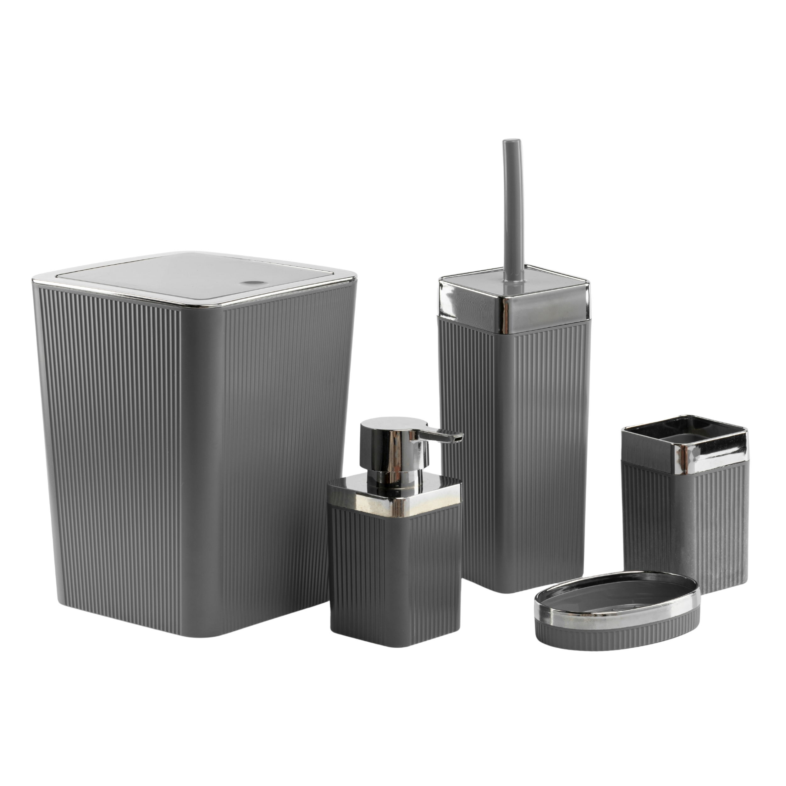 Maxel Mimoza Çizgili Krom 5’Li Banyo Seti